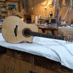 This is my small body guitar design. A size that I find is just at the meeting point of small and mid size sound… It is loud, fast and clear as a small body should sound, but just big enough to have a full sound to back it up