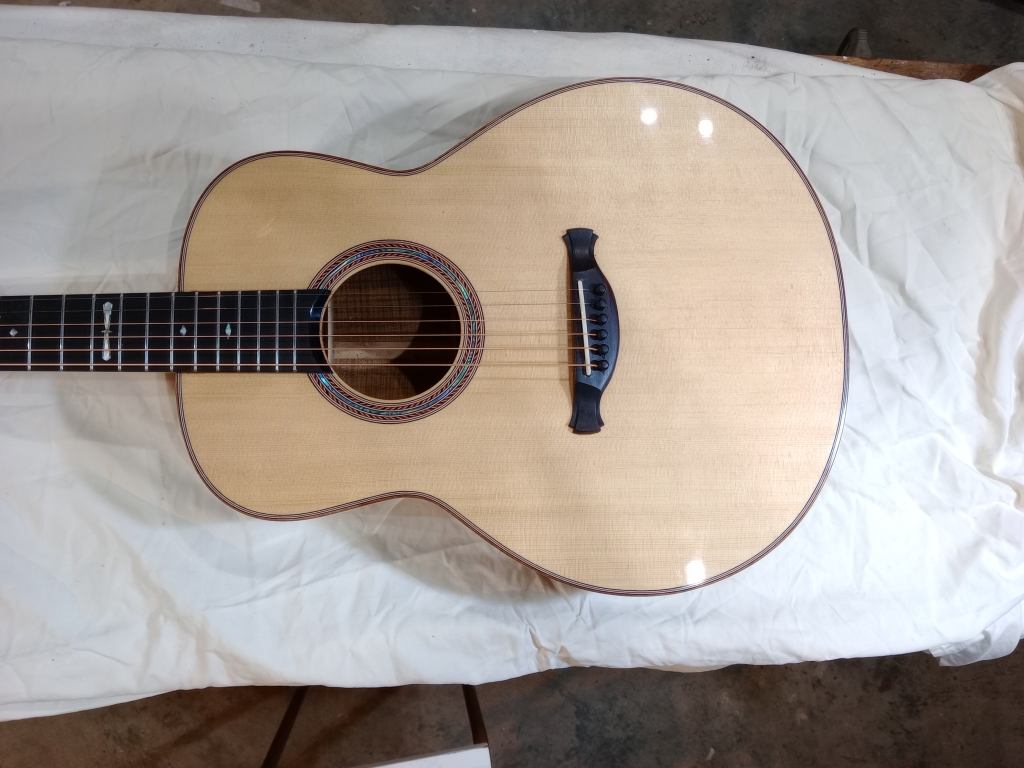 This is my mid size guitar. Although I feel this size is about ideal for a steel string guitar. It has the depth and complexity from the larger body, as well as the response speed and clarity lacking in a larger body.